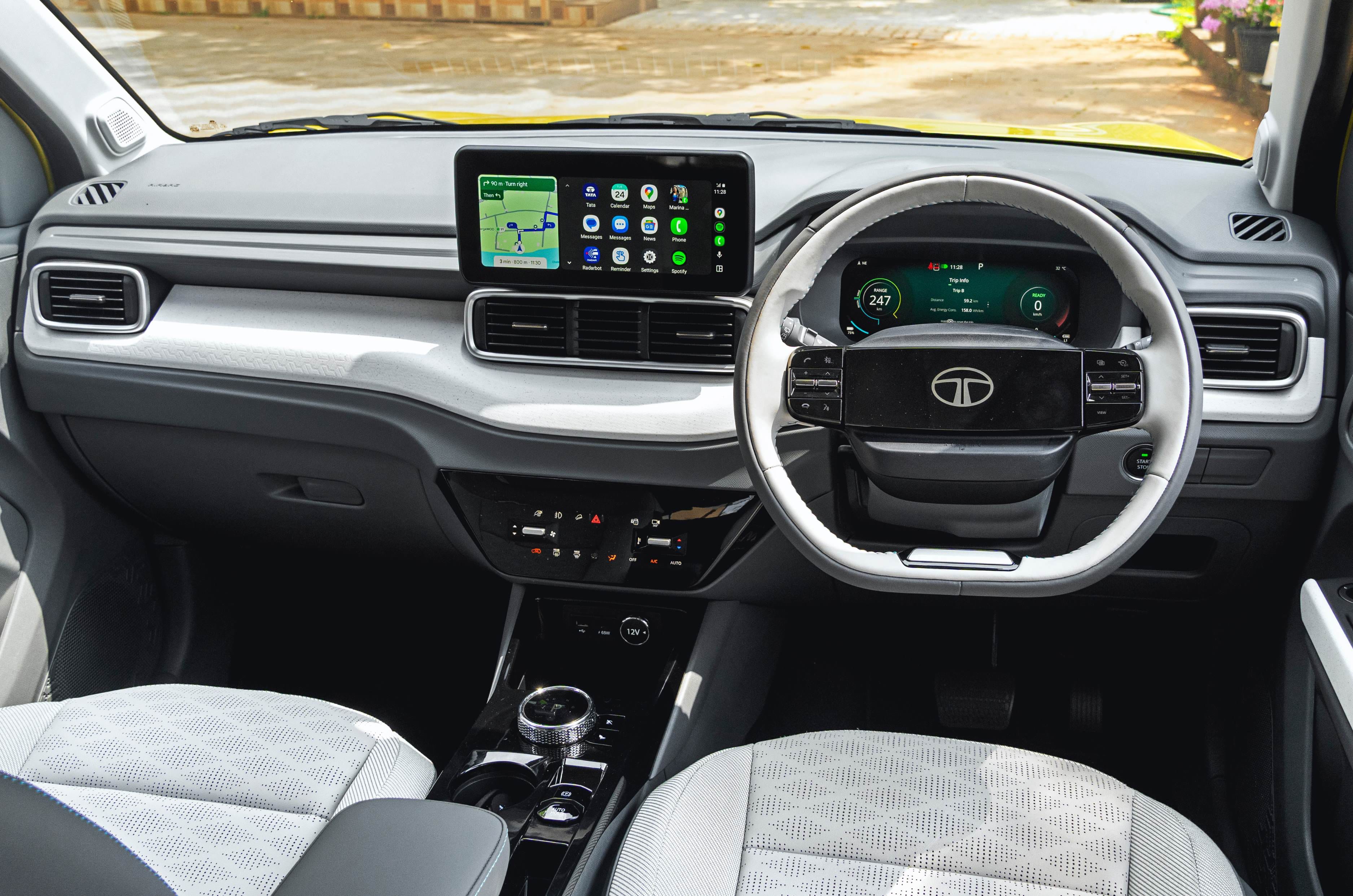 At higher speeds, the Punch EV remains stable and planted. There is some body roll when driven hard, but the low-mounted battery helps it feel planted and secure. The steering is light at low speeds and builds weight gradually, making it easy to place the car accurately. Regenerative braking can be adjusted across four levels using the paddles behind the wheel, reducing the need for frequent brake use. Despite the switch to rear drum brakes, braking performance feels reassuring in everyday driving.