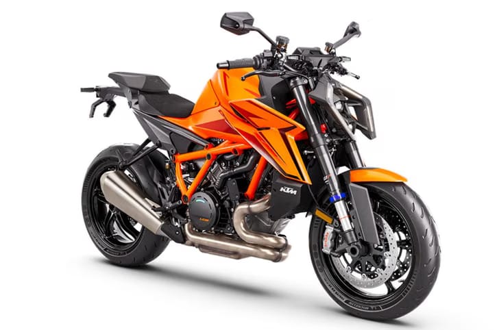 The 1390 Super Duke R is the brand’s flagship naked streetfighter. Powered by a 1,350cc V-twin engine producing 190hp and 145Nm, it's one of the most powerful naked bikes in production. It features WP Apex semi-active suspension, Brembo Stylema brakes, a comprehensive IMU-assisted electronics suite with cornering ABS, traction control and multiple riding modes.